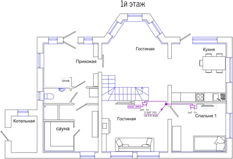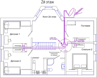 5. Оборудовать дом системами приема спутникового телевидения Триколор и эфирного телевидения.