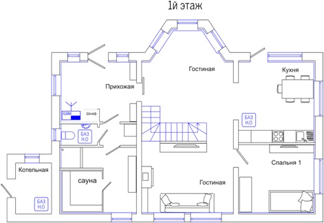 Тип извещателей и места их установок выбирались согласно техническим условиям полученным от охранной фирмы, которая в дальнейшем будет осуществлять мониторинг объекта.