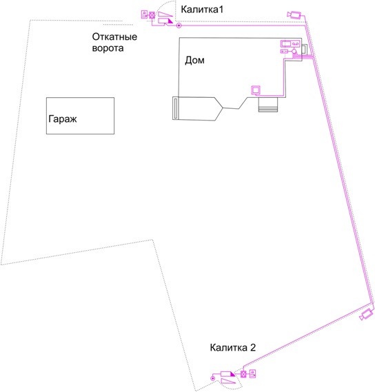 Исходные данные: Загородный 2-х этажный дом, площадью 200 кв. м. Местоположение - Ленинградская область, Всеволожский район. Площадь придомового участка - 8 соток. Дом каменный. Забор по периметру участка коричневый профилированный лист высотой 2 метра. Въезд на участок через откатные ворота. Два входа через калитки. На участке отдельно стоящее кирпичное здание гаража, площадью 25 кв. м.. Задачи: 1. Оборудовать дом и здание гаража охранно-пожарной сигнализацией с дальнейшей сдачей объекта под охрану охранной фирме и страхованием дома и имущества.